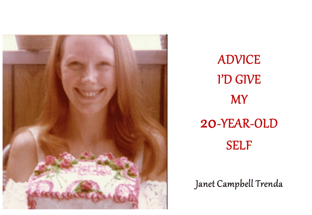 Tonight I completed a few more dear unfinished tasks of hers. It began when recently I re-read her autobiographical Storyworth book and came across the chapter entitled “What Advice Would You Give Your 20-Year-Old Self?” I’d read the chapter a couple times previously, but this time it struck me that her very breezy and casual style belied some profound ideas, if I’d only take the time to read them slowly and thoughtfully. She’d written these for our multi-generational offspring, and I wondered if our family members had also sped through the tidbits without much reflection. I pondered: How could I help Janet plant her sentiments more firmly in their hearts and minds? The idea of a “flipbook” came to mind… each page a single thought from that chapter, coupled with a photo. I labored long in selecting photos and designing the piece, using only Janet’s words, and in the past couple of weeks I’ve delivered or mailed copies to all our “downline” and others in our families.